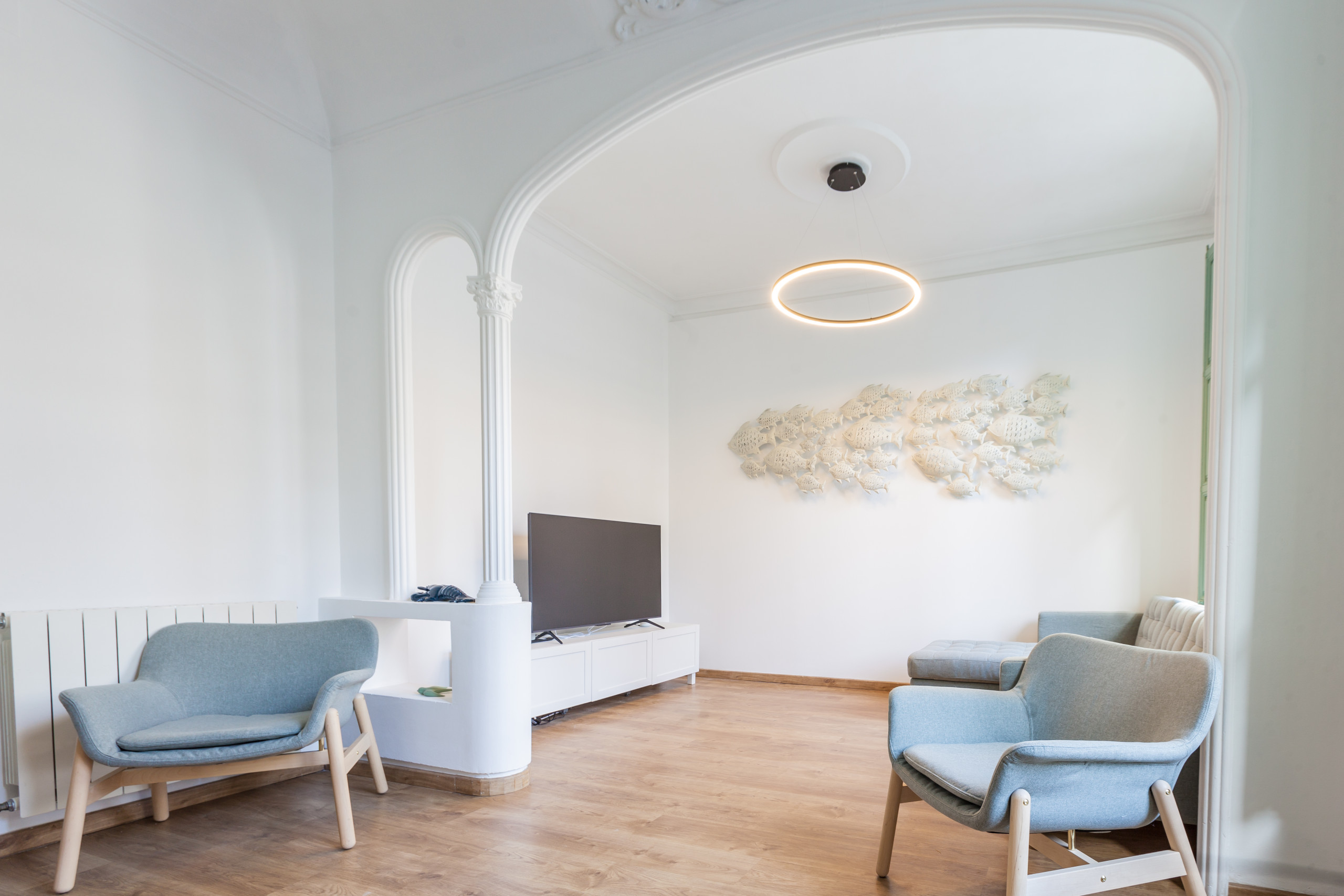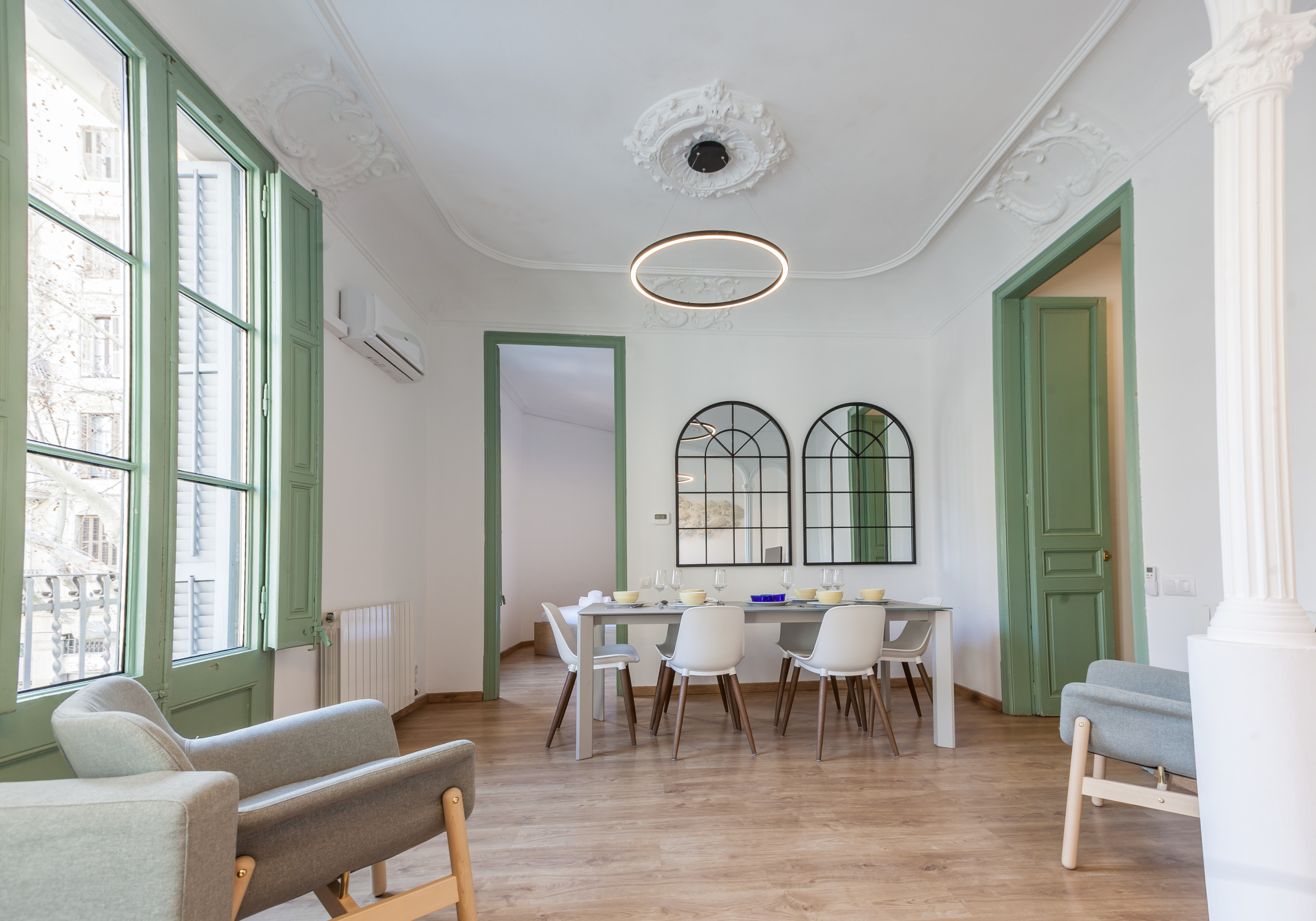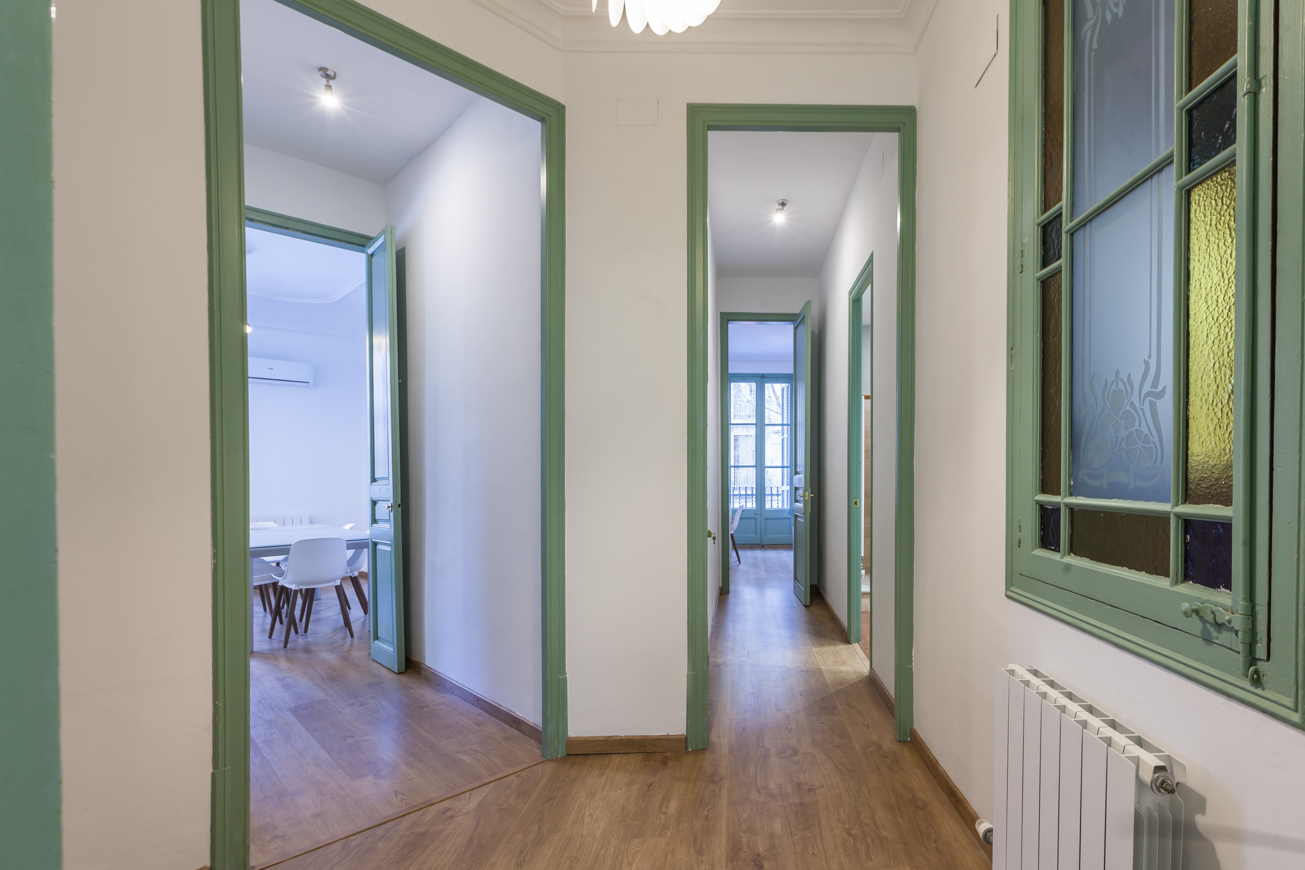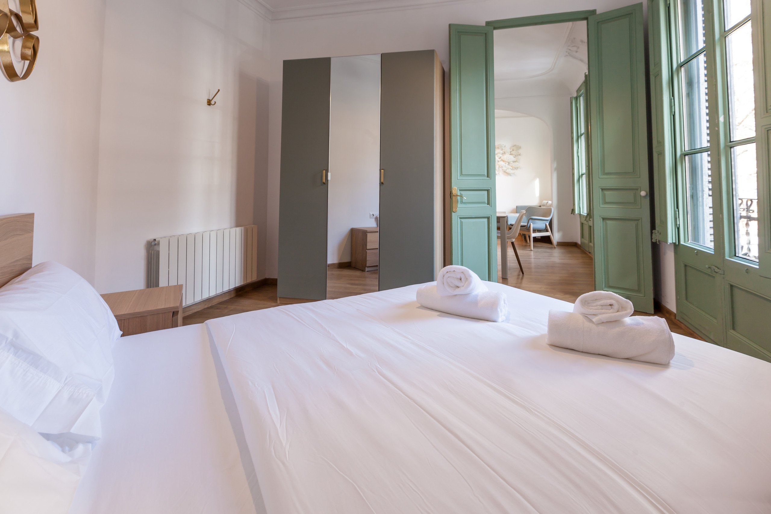 Entdecken Sie diese moderne 105m² große Wohnung im Herzen Barcelonas, perfekt für Familien, Freundesgruppen und Geschäftsreisende. Mit Platz für 6 Personen bietet diese Unterkunft einen komfortablen und funktionalen Raum mit 3 Schlafzimmern: 1 Etagenbett und 2 Doppelbetten.