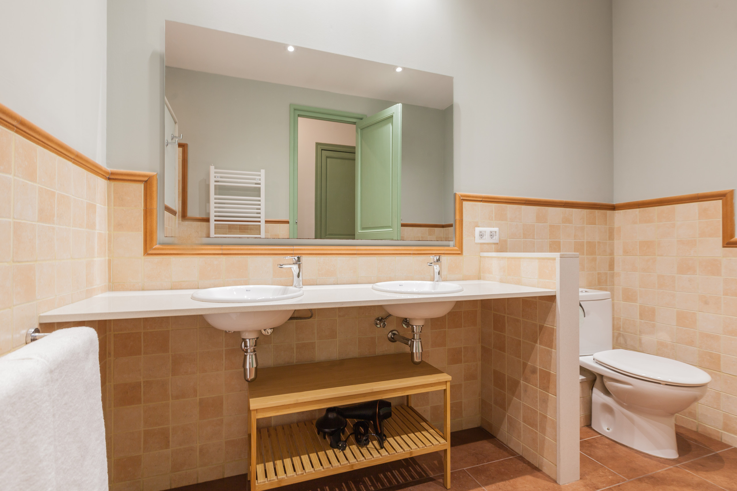 Verfügt über 2 Badezimmer, eines mit Dusche und eines mit Toilette, was das Zusammenleben der Gäste erleichtert. Der Fernseher fügt einen Unterhaltungsaspekt für Momente der Erholung hinzu.