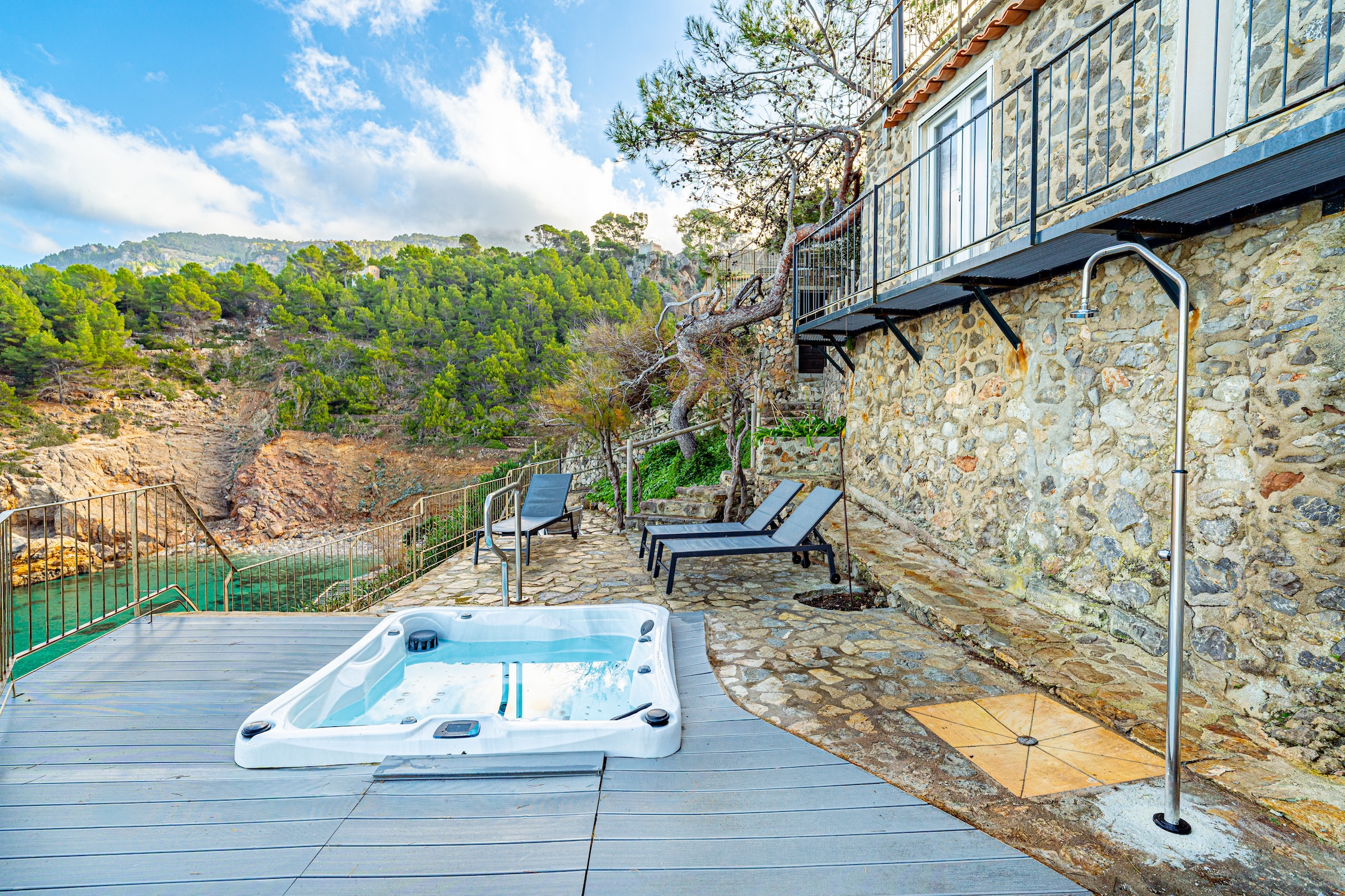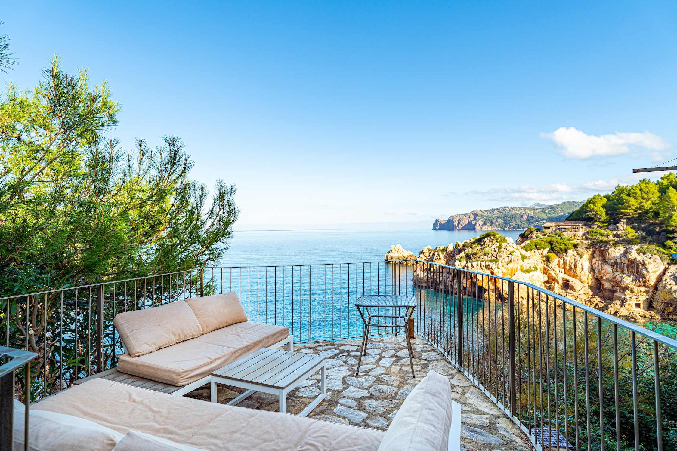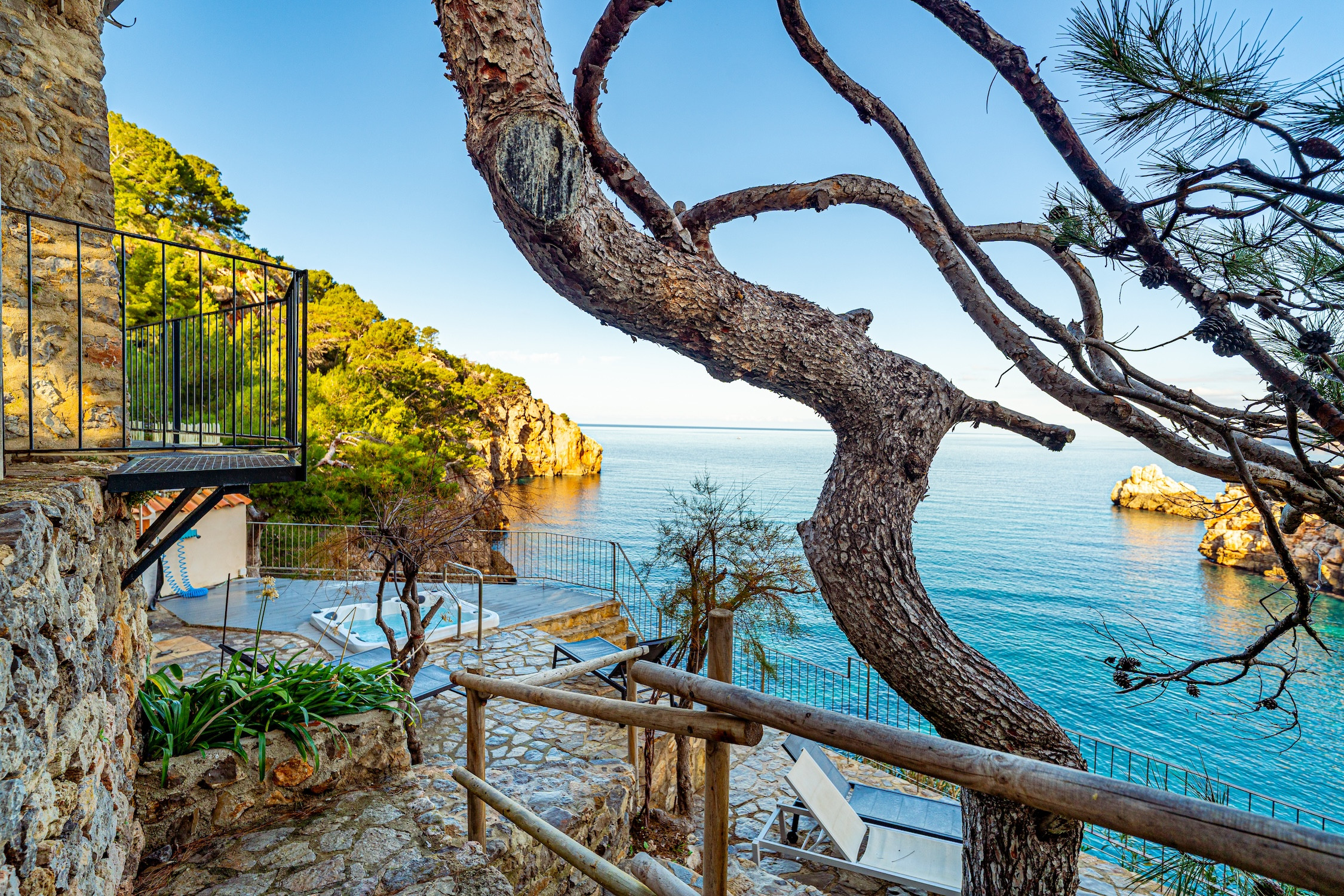 Der Strand aus Felsen und Kieselsteinen befindet sich nur 50 Meter entfernt, über einen Privatweg zugänglich, und der Außenwhirlpool wird zum perfekten Ort, um sich zu entspannen und eine der schönsten Landschaften Mallorcas zu betrachten.