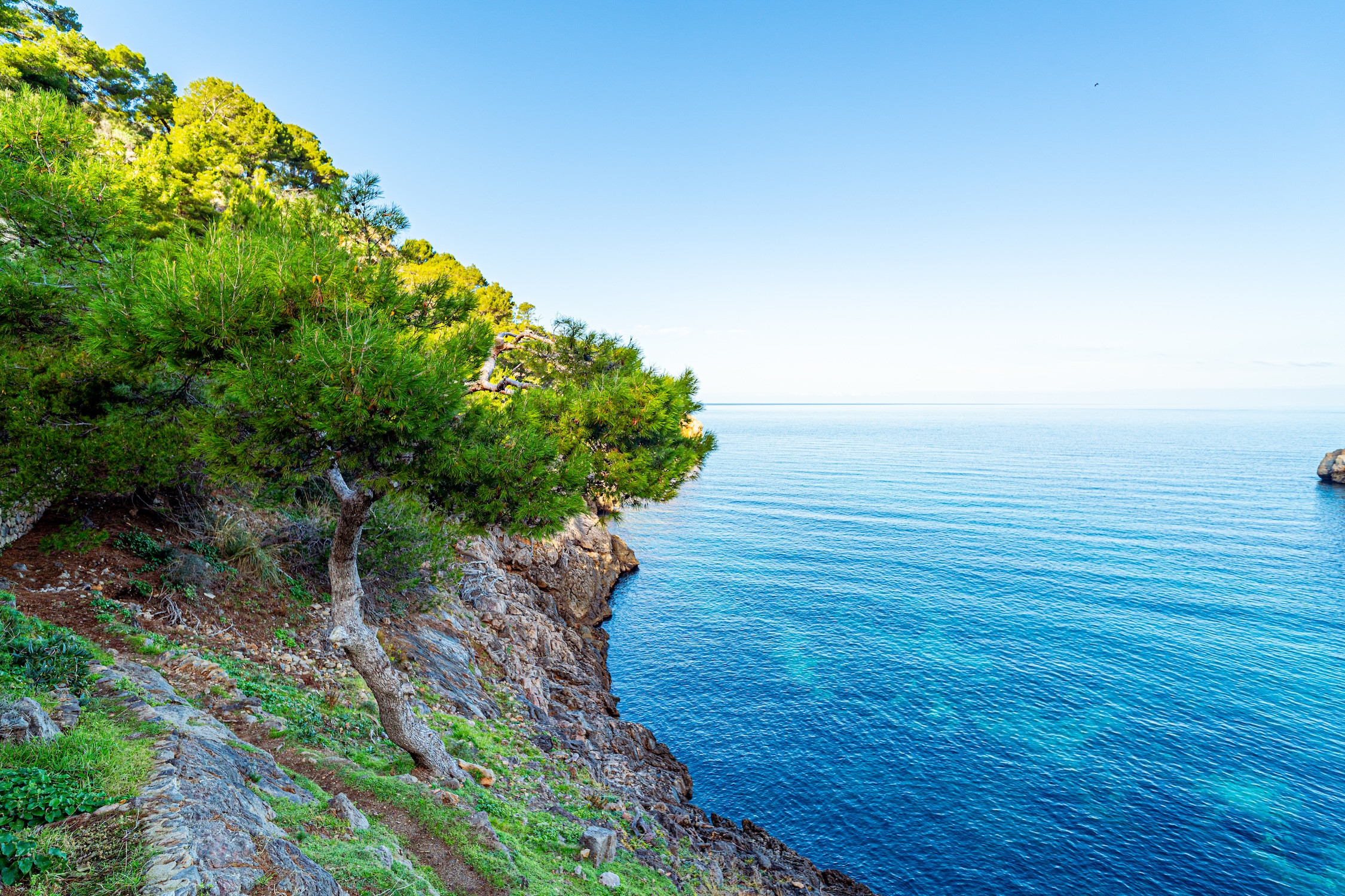 Cala Deià ist eine kleine felsige Bucht an der Nordwestküste von Mallorca, innerhalb der Gemeinde Deià und mitten in der Serra de Tramuntana. Sie ist von Klippen, niedrigem Buschwerk und Kiefernwäldern umgeben, mit sehr klarem Wasser. Sie hat keinen feinen Sand, sondern Kies und Steine, was ihr Charakter und einen sehr authentischen Naturstil verleiht.
