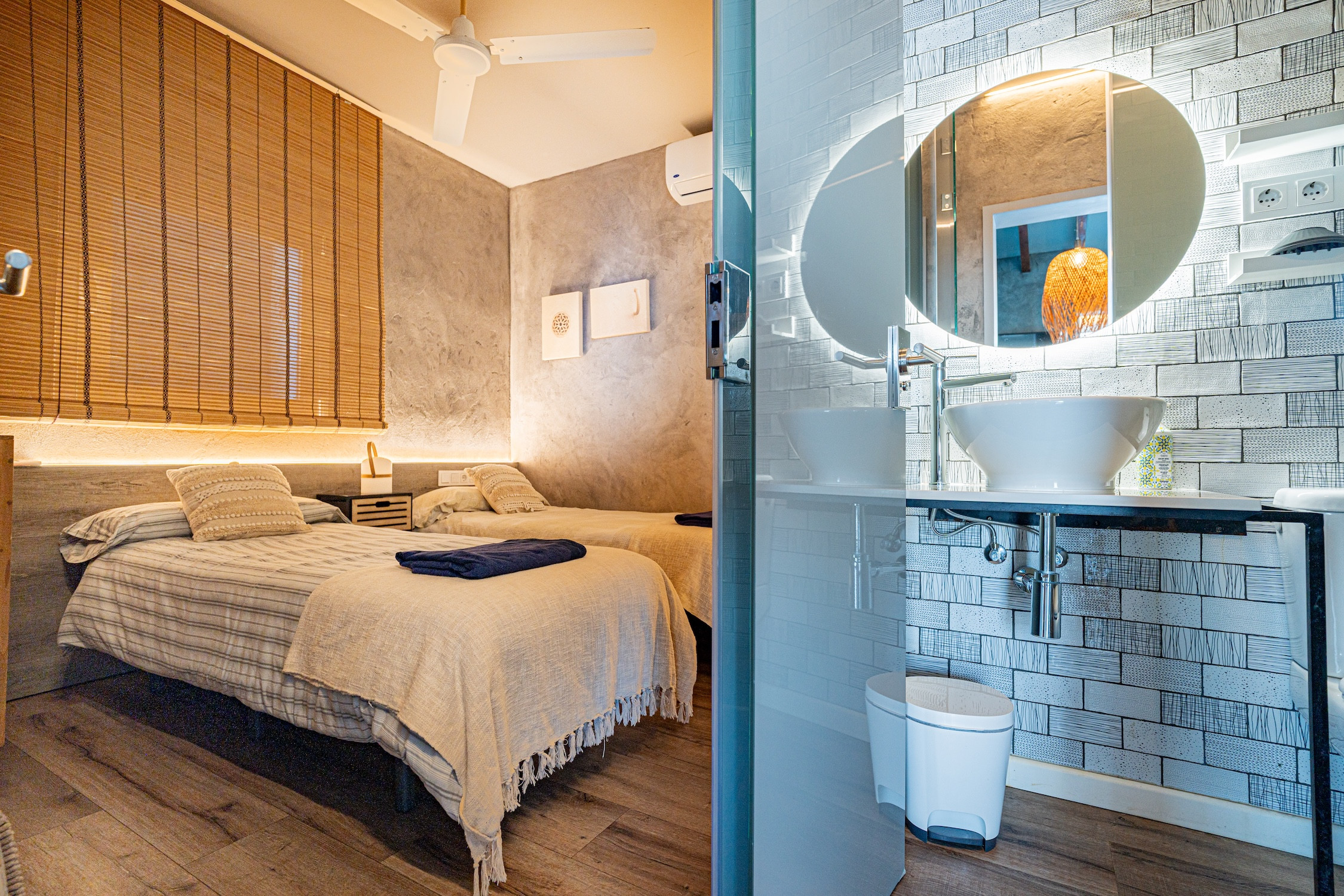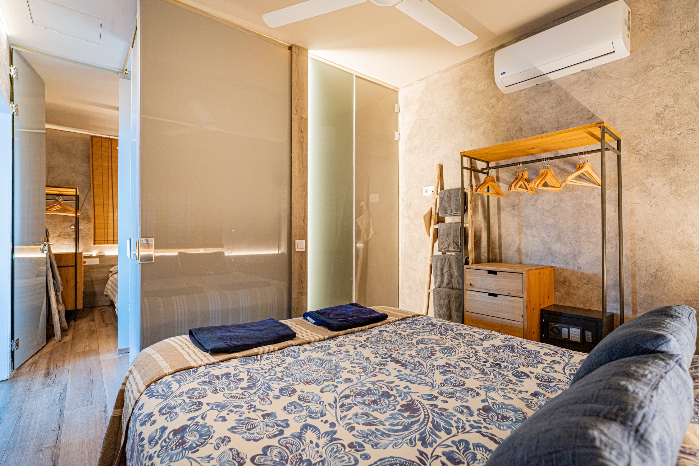 Totaler Komfort: Klimaanlage, Heizung, Deckenventilator, Verdunkelungsvorhänge und Moskitonetze.