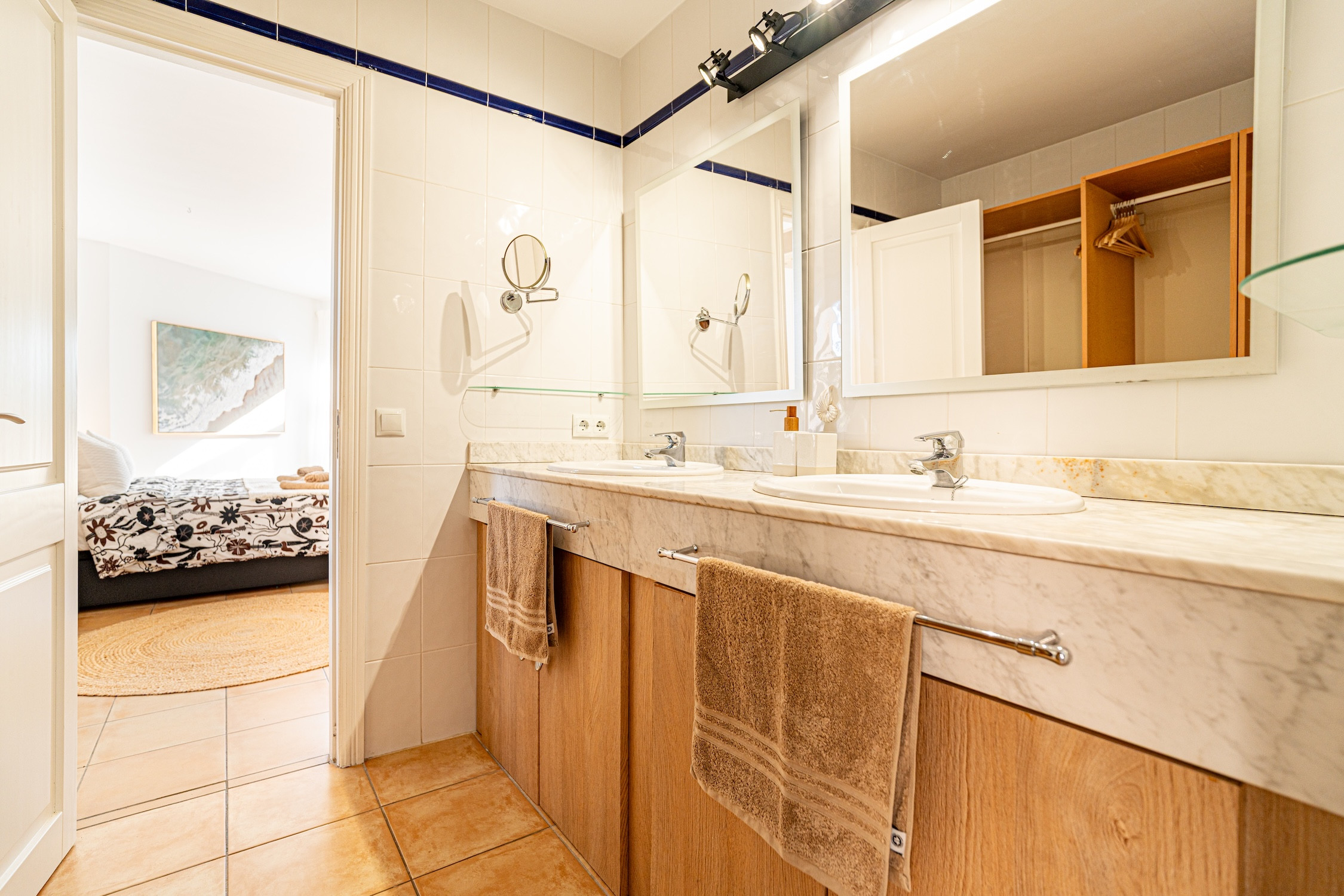 Es verfügt über 3 Schlafzimmer mit 3 Doppelbetten und einem Schlafsofa sowie 4 Badezimmer (2 mit Dusche, 1 mit Badewanne und 1 Gäste-WC), was Komfort und Privatsphäre für alle Gäste gewährleistet.