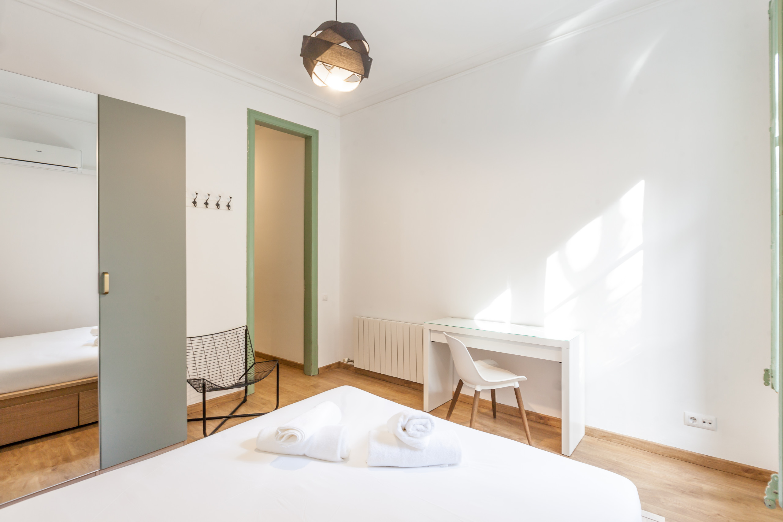 Descubre este moderno apartamento de 105m² ubicado en el corazón de Barcelona, perfecto para familias, grupos de amigos y viajeros de negocios. Con capacidad para 6 personas, este alojamiento ofrece un espacio cómodo y funcional con 3 dormitorios: 1 litera y 2 camas dobles.