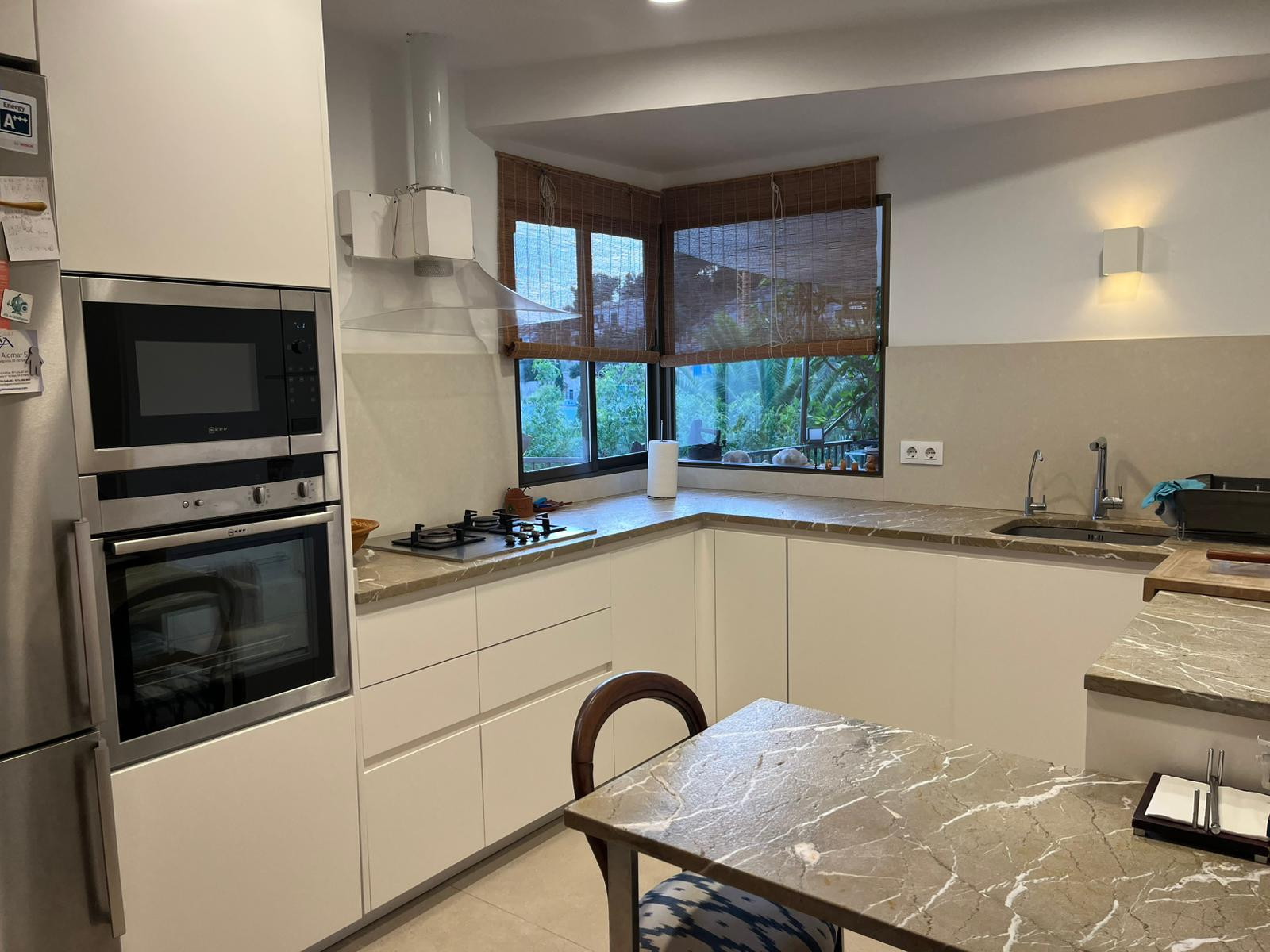 La cocina independiente está completamente equipada con electrodomésticos modernos como lavadora, lavavajillas, horno, microondas, tostadora y máquina de café. Además, cuenta con aire acondicionado, calefacción individual de gas, WiFi y televisión para garantizar la máxima comodidad.