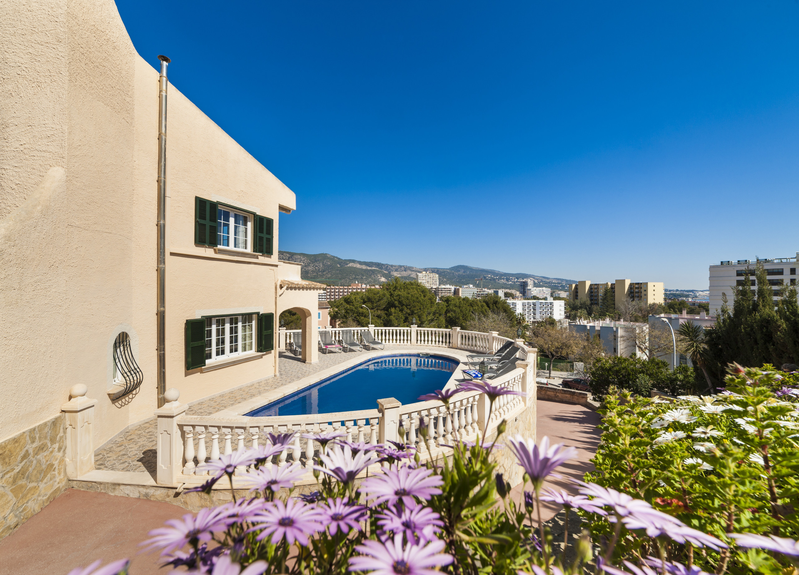 Descubre esta espectacular villa de dos plantas, ubicada a tan solo diez minutos de las impresionantes playas de Palmanova, Son Matías y Magaluf. Rodeada de exuberante vegetación mediterránea, la vivienda ofrece un entorno luminoso y tranquilo, ideal para unas vacaciones inolvidables. Su impresionante piscina privada cuenta con vistas panorámicas al mar y a las montañas, complementada con una amplia terraza y un acogedor patio interior, perfecto para relajarse bajo el sol o disfrutar de cenas al aire libre.